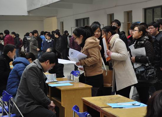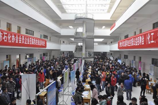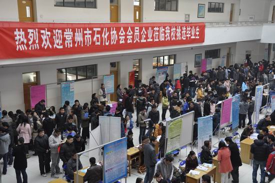12月8日上午,常州大学2013届毕业生化工、制药专场招聘会在武进校区辅楼大厅顺利举行。招聘会吸引了南京炼油厂、泰州石化等中石化单位,华达化工集团有限公司、常州亚邦齐晖医药化工有限公司等常州市石化协会会员企业,江苏南方轴承股份有限公司等武进高新区园区内多家科技型企业,南亚电子材料(昆山)有限公司等昆山开发区单位共105家江浙沪地区的各类型企业,提供化工、机械、自动化、环境安全、会计、工商管理等涉及学校数十个专业的近千个岗位,为2013届毕业生提供了广阔的就业机会。常州市石化协会秘书长朱庆坤、武进高新区人事局副局长胡玲芝、昆山开发区人才中心主任朱春源,石油化工学院王车礼书记、马江权副院长、周刚副书记、制药与生命科学学院张继延副书记等领导亲临现场,了解学生就业情况和企业用人需求。