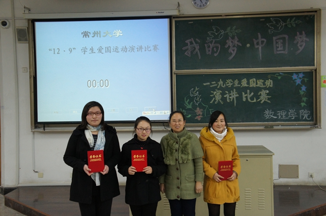 为了纪念"一二九"学生爱国活动,12月9号下午,数理学院在W19阶举办了以“我的梦 中国梦”为主题的演讲比赛。本次比赛共有18名参赛选手,数理学院党委书记蒋美萍、学院关工委常务副主任赵璧、党委副书记张功峰、辅导员常愉和薛峰老师出席并担任大赛的评委。全体12级同学及部分11级同学观看了比赛。
