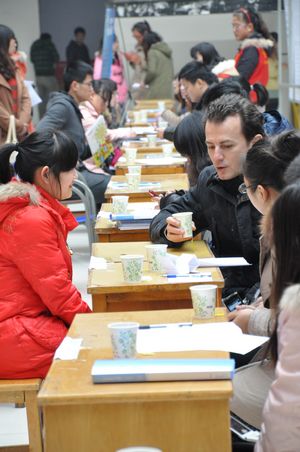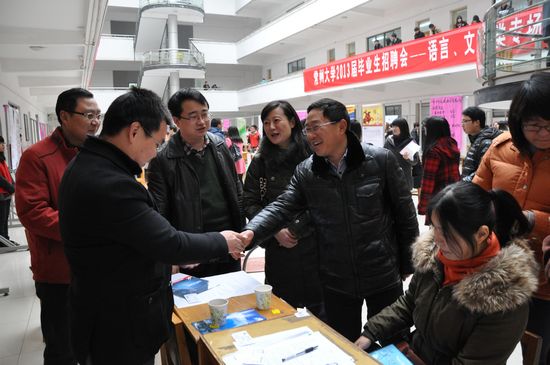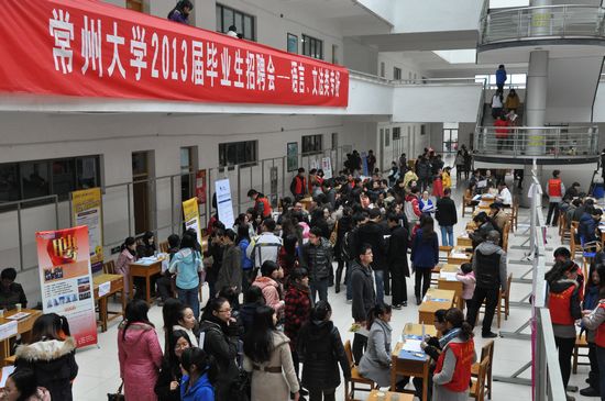 12月15日上午,常州大学2013届毕业语言、文法类专场招聘会在武进校区教学辅楼大厅顺利举行。此次招聘会吸引了来自常州及周边地区的六十多家单位,需求人才涵盖了英语、日语、法学、社会工作、国贸等多个专业,为毕业生提供了一个较好的就业平台。外国语学院党委书记李晓明、学生处副处长周晓东、外国语学院党委副书记谢章丽、文法学院党委副书记薛勇、校大学生就业指导中心负责人和外国语学院、文法学院全体辅导员以及我校2013届毕业生参加了招聘会。