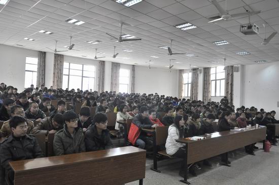 大会分三部分进行,首先邀请学校保卫处副处长秦义老师和学院实验室安全负责任人周永南老师开展安全教育讲座,为即将进入实验室的毕业生讲解实验室及日常安全知识,秦处长还将灭火器等消防器材搬到讲座现场为学生示范并请学生现学现用,极大提升了学生的安全意识。学院副院长徐淑玲老师以具体事例提醒同学们毕业环节中应该注意的事项,给学生说明了毕业环节的目标、安排等等,教导学生在这个环节要养成良好的习惯,为自己迈上职场做好准备。学院党委副书记周刚老师用历年数据对比,客观分析了当前毕业生面临的形势,指出今年就业形势十分严峻,要求毕业生调整就业和考研目标,以积极的心态去面对就业和即将到来的研究生复试。