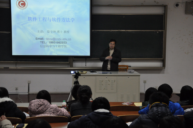 为提升学生对专业的进一步认识,学院为2012级学生开设了专业导论教授论坛,通过邀请学院的教授为学生开设专业讲座,进行专业思想再认识教育。开学初,由邹凌副院长在W2阶为学生做题目为“专业导论课的目的意义”讲座,介绍专业导论教授论坛课的具体安排与考核要求;由徐守坤教授在W13阶为12级学生做题目为“软件工程与软件方法学“讲座。两位教授的讲座拉开了新学期专业导学工作的帷幕。