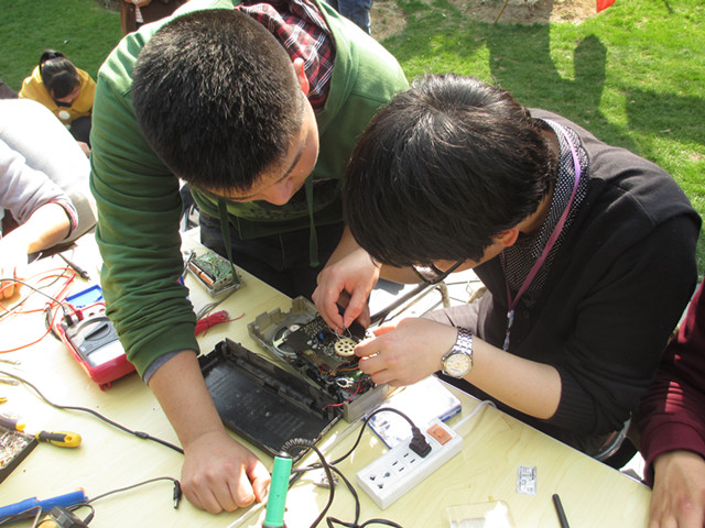 继3月3日形式新颖的雷锋系列活动之“快闪”成功在人民公园举办之后,机械学院团员青年举行的义务维修再一次亮相市区,给市民朋友带来了实实在在的维修服务工作。