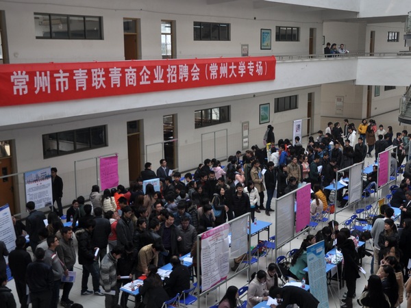 3月16日上午,我校在武进校区教学辅楼举办了常州市青联青商企业常州大学专场招聘会。此次招聘会是常州市青联青商企业首次以组团的形式来高校招聘毕业生,吸引了常州地区39家企业,提供岗位近200个。江苏上上电缆集团有限公司、江苏新科软件有限公司、常州卡米文化传播有限公司等单位纷纷来我校招贤纳才,千余名毕业生前来应聘。