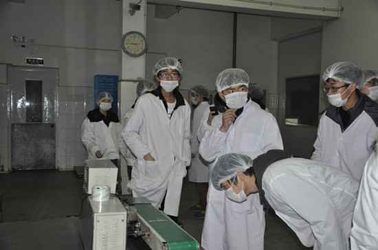 随后,同学们来到常州市怡泰食品有限公司,深入食品企业的生产车间,了解生产过程,与企业负责人李立群总经理面对面的交谈熟悉企业生产现状和发展方向,李经理表达了企业急需食品质量监控方面的专业人才,希望同学们为自己未来职业发展早做规划,要求同学们不要满足于书本知识,积累实践经验能够不畏辛苦在生产一线上锤炼自己。