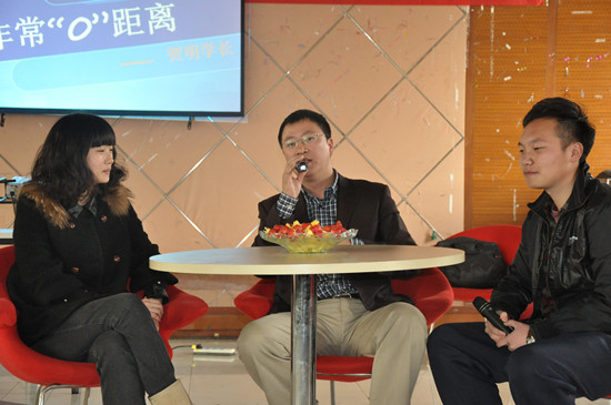 贺明先生是我校92届校友,96年赴美国路易斯安娜州立大学攻读硕士、博士学位后一直生活工作在美国。2004年回国创业,现任常州太平洋药物研究所有限公司、常州金远药业制造有限公司总经理。在访谈现场上,贺明学长用风趣幽默的话语讲述了他从母校毕业后先就业,通过托福考试赴美求学,博士毕业在美国工作,又回国创业的奋斗历程。他以亲身经历告诉在场的学弟学妹,为了未来更好地发展,读研和出国都是一条比较好的路径。