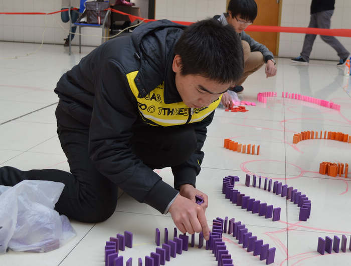 3月31日下午,由校团委主办、材料学院承办的“多米诺骨牌”大赛在武进校区辅楼大厅顺利举行。本次比赛以我校建校35周年为主题,学院12级的十二支代表队参加了此次比赛,评委团由学生会各部门部长组成。