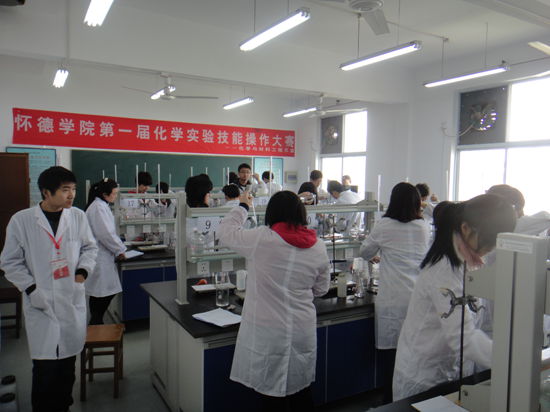 为培养学生化学实验操作技能,选拔化学实验操作能手,增强学生实践创新能力,3月30日上午,怀德学院在实验楼举行了首届化学实验技能操作大赛。化学与材料工程系徐建平主任、辅导员老师及100多名参赛学生参加了比赛。