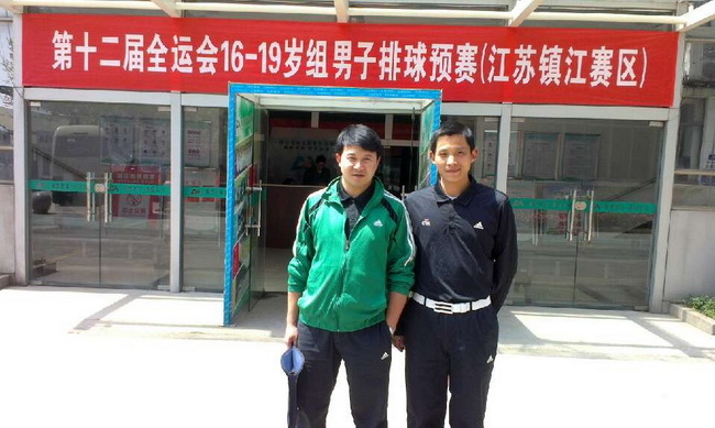桑月标老师(右)参加全运会16-19岁男子排球预赛裁判员工作