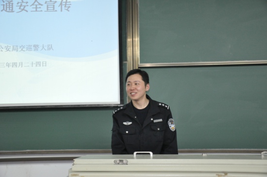 为了贯彻落实学校“校园安全工作会议”精神,提高学生的安全意识,为党代会营造和谐稳定的校园氛围。校保卫处、制药与生命科学学院、环境与安全工程学院于4月23日晚联合举行校园安全教育报告会,邀请常州科教城派出所沈春兰所长,武进区公安局武进交巡警大队二中队韦晗骏副队长对制药学院、环境学院的学生干部进行校园安全教育。校保卫处相关负责人、两个学院的相关领导参加了报告会。