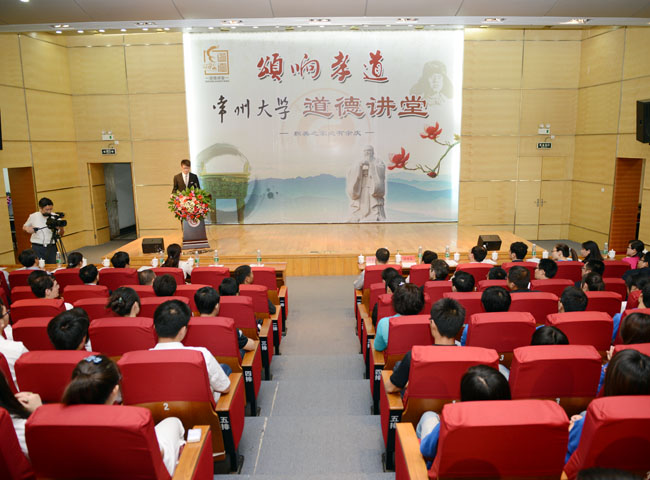 百善孝为先,为了弘扬中华民族的传统孝道美德,5月15日下午,由我校宣传部主办,制药与生命科学学院承办,校关工委协办的“颂响孝道”道德讲堂在我校文彰报告厅举行。常州市委宣传部副部长、市文明办主任陈志良,常州市教育局相关领导,我校副校长陈奎庆出席本次道德讲堂,组织部、宣传部、纪委、学生处、工会、离退处、团委、制药学院等部门相关负责人参加了本次道德讲堂。
