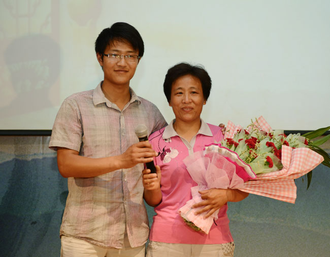 送吉祥:马小坤向妈妈送上鲜花