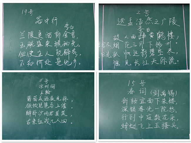 比赛中,参赛教师纷纷使出看家本领,个个专注认真,一笔一划,一丝不苟,一行行整齐美观的粉笔字跃然于黑板上,它们或方正或圆润、或清秀或苍劲,充分展示了青年教师扎实的教学基本功。评委们从书写的正确性、技术性、整体性、艺术性及其他方面对参赛教师的作品进行综合评分。最后,王强老师的作品受到了评委们的一致好评,获得了一等奖,朱方等3位老师获得二等奖,仲旦彦等6位老师获得三等奖,温丽馨等9位老师获得鼓励奖。