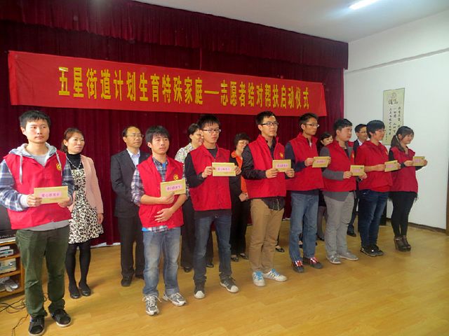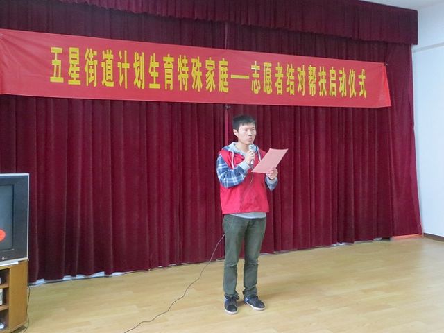 都市桃源社区书记樊云霞向大家介绍了志愿者团队及帮扶机制。专业志愿者团队将为计划生育特殊家庭提供心理咨询、法律援助、医疗保健等方面的免费服务,而大学生志愿者团队和社区热心居民王建章将为计划生育特殊家庭提供诸如家政、功课辅导、小家电维修等服务。为推进结对帮扶机制走向志业化、个性化、常态化服务,五星街道副主任史建荣向专业志愿者团队颁发了聘书,都市桃源社区书记樊云霞向大学生志愿者和王建章发放了结对证书。