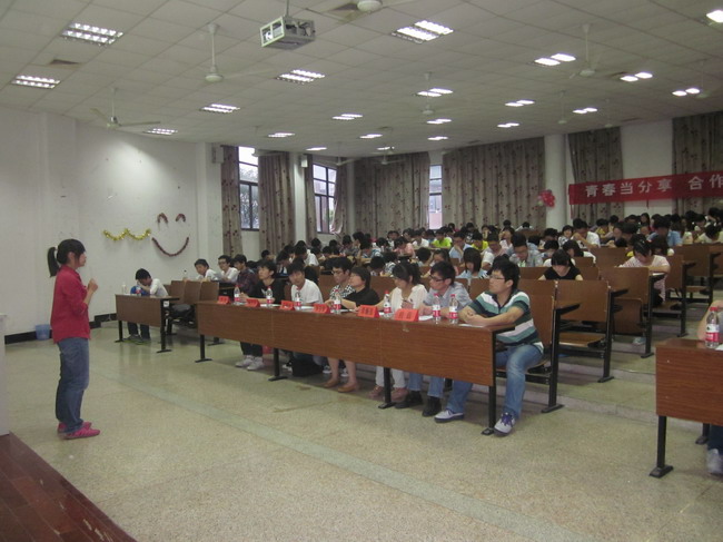 活动前,蔡亚敏老师谈了她对这次活动的想法,希望在场的大学生能够多交流,多分享自己的故事。8位参赛者就“人际交往”、“恋爱经历”、“成长故事”等方面进行了演讲。或是感人肺腑,或是幽默搞笑,亦或是发人深省的演讲将活动推到一个又一个的高潮。各个参赛同学都极富表演力,土木122班的廖浩宇演讲的恋爱问题因为贴近大学生活而引起现场同学们广泛共鸣,给水121班邵峰幽默阐述自己的成长过程让现场的气氛high到极点,环工123的张培盈笑对挫折的态度让我们深深敬佩。演讲结束后,每位参赛者选择一道题目来表达自己的看法,现场的观众也热情高涨地加入其中并积极的发表自己的看法。演讲期间的节目插曲也异常精彩,土木121的蔡佳慧演唱的《红日》让我们感受到青春的热情,土木122班的刘鑫弹奏的吉他曲《kiss the rain》也让我们深深的沉醉其中。最终,邵峰夺得“心理励志之星”,张培盈凭借机制多变摘得“应变之星”,薛孙莉凭借精彩的演讲获得“演讲之星”。活动最后,华德仁老师对本次活动进行了总结,高度认可了本次活动举办的意义,同时也对同学们未来的发展提出了希望。