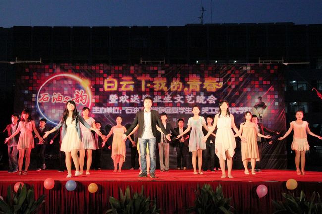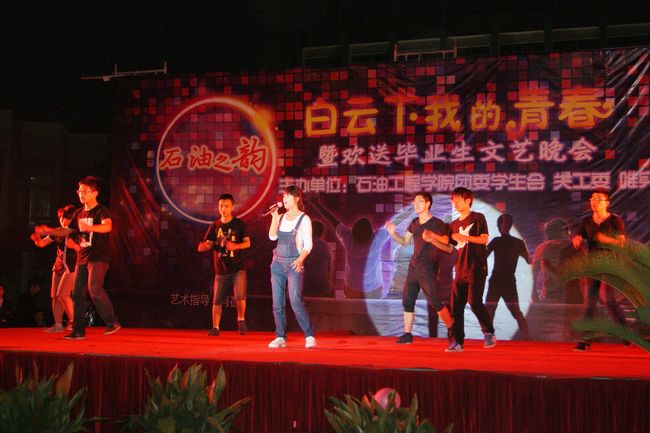 四年师生情,今昔恨别离;满堂祝福语,只赠学子行。6月2日晚,石油工程学院“白云下我的青春”欢送毕业生文艺晚会在白云校区北广场盛大开幕,为全体毕业生和白云校区同学们送上一场荡气回肠的青春盛宴。校团委书记牟静,白云校区管委会副主任张鍠,机械工程学院党委副书记吴荷平,校党委组织部、学生处、团委部分科室负责人,各学院分团委书记,校外共建单位、志愿服务基地、实习见习基地的负责人应邀出席晚会。此外,石油工程学院领导、关工委老师、系主任、教职员工以及我院近千名学生欢聚一堂,为2013届毕业生送上离别的祝福。
