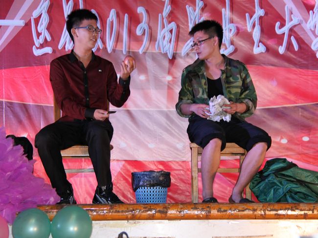 晚会节目在院Follow乐队激情昂扬的摇滚乐中拉开序幕,一首《Rolling in the deep》,把现场观众的激情瞬间点燃。校关工委舞蹈队送上的《丝巾斗牛舞》美轮美奂,同学们赞不绝口。由校关工委刘金陵、陈伟杰,校外退休教师李小平表演的戏剧《沙家浜》将现场气氛推向高潮。魔术《魔手神采》让大家瞠目结舌,魔术师手中的道具变幻莫测,现场不时传来惊叹声。健美操队的《悲怆第三章》让人热血沸腾,哑剧《候车室的故事》用无声的表演,精湛的演技,让现场的观众忍俊不禁。大四学生的T台走秀,曼妙的身姿,矫健的步伐,带给观众无限的视觉冲击。时光匆匆,当我们背上行囊,回首母校时,又多了一份感动,一首《等待》让现场的观众不禁潸然泪下。院学生会白云记者站的视频《恰离别,致青春》将在场的观众带进了对往昔的追忆,大学四年的风风雨雨,点点滴滴都将成为毕业生们一生永远的回忆。DS舞团带来的动感的街舞表演《keep on dancing》又一次将晚会推向了高潮,同时,晚会也在动感的舞蹈中圆满落幕,观众们依旧沉浸在精彩的节目中,久久不愿离去。