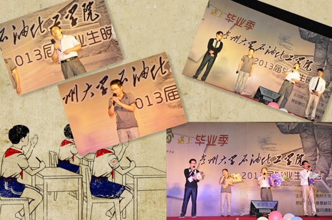 6月6日晚,石油化工学院“青春遇上毕业季”2013届毕业生晚会在常州大学武进校区水月广场成功举行。石油化工学院党委书记王车礼、院长何明阳,副院长钟璟、马江权、徐淑玲,党委副书记周刚,院关工委常务副主任徐璇,各系部主任、各学院团委负责老师及学工办老师与2013届毕业生近千人观看了本台晚会。