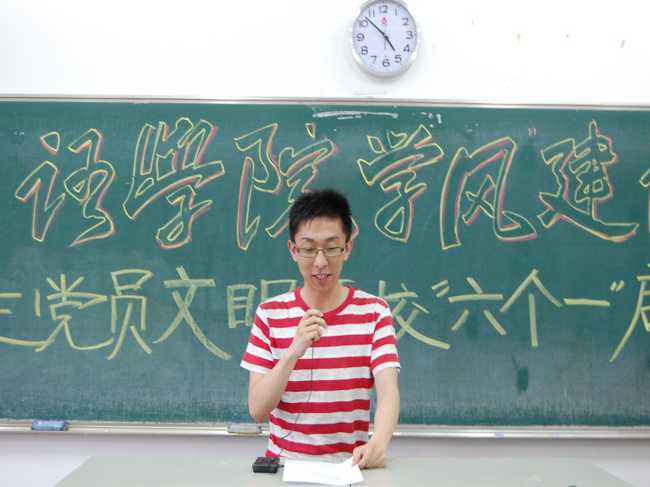 谢章丽副书记在讲话中感谢2013届毕业生党员在大学四年期间为外国语学院各项工作的开展所做出的贡献,要求毕业班党员牢记入党誓言,发挥“一个党员一面旗帜”的模范带头作用,遵纪守法,维护好校园秩序,积极参与学院毕业生文明离校“六个一”活动,并对2013届即将踏上新的人生旅途的毕业生党员提出了三点寄语:牢记校训“责任”、勤于学习、多宣传母校和为母校的发展做出应有的贡献。