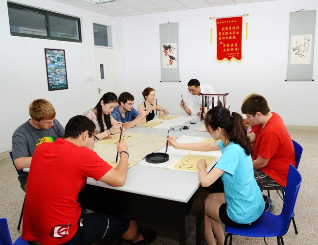 圣大学生上书法课