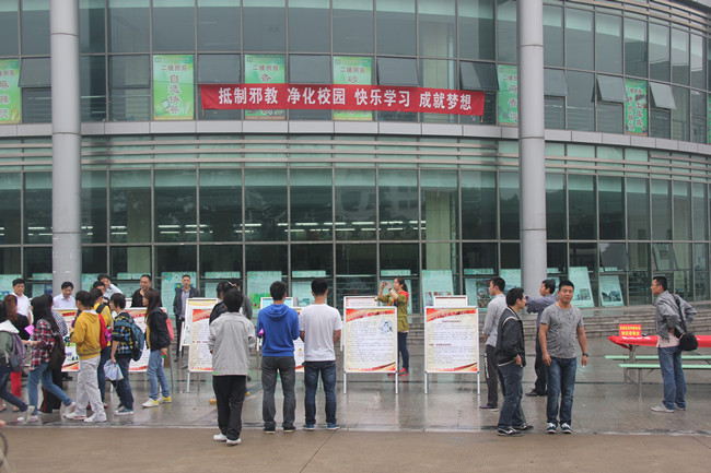 600余名学生在“防范邪教危害,铸造美好校园”的横幅上签名,表达了对此次活动的支持,也表示了坚决反对邪教,从我做起的决心。