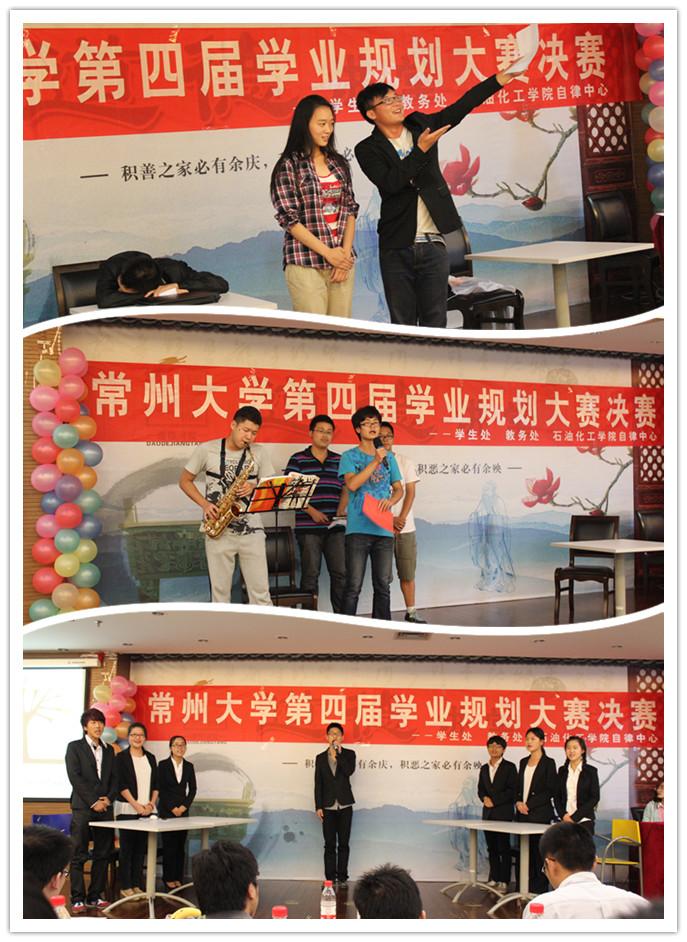 本次大赛共吸引了全校近四十支队伍报名参与,经初赛、复赛的层层选拔,最终共有8支队伍进入了决赛环节。决赛中的各支队伍都是经过精心准备的优秀团队,他们从自我分析、职业认知、计划与实施、评估与调整等方面展示了个人与团队的学业规划内容,运用精心设计的PPT,生动形象的多方位展示了对学业规划的理解与感悟,选手们各抒己见,想法独到,真实透彻的反应了规划及实施等各个环节。在团队表演环节更是丰富多彩,表演形式有小品、辩论、音乐情景剧、乐器表演、歌曲、朗诵、演讲等等,博得了同学们的阵阵笑声与掌声。最后,学生处老师对参赛队伍进行了点评,对各参赛队伍的精心准备给予了充分的肯定,同时指出了各队的优点与不足,并祝愿大家“同样的青春也会有不一样的精彩”。