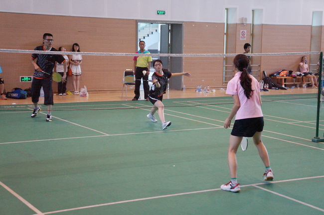 比赛中,各位队员挥汗如雨,斗智斗勇,充分发挥自己的水平,力争每一分。啦啦队员也情绪高涨,鼓足劲为自己的队伍呐喊加油。在这激情四溢的气氛中,教师裁判员却保持着一贯的严肃、认真态度,顶着闷热,努力判好每一分,为比赛顺利进行服务。