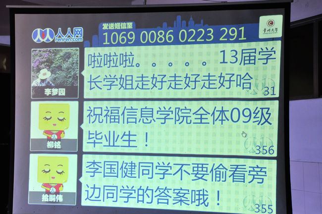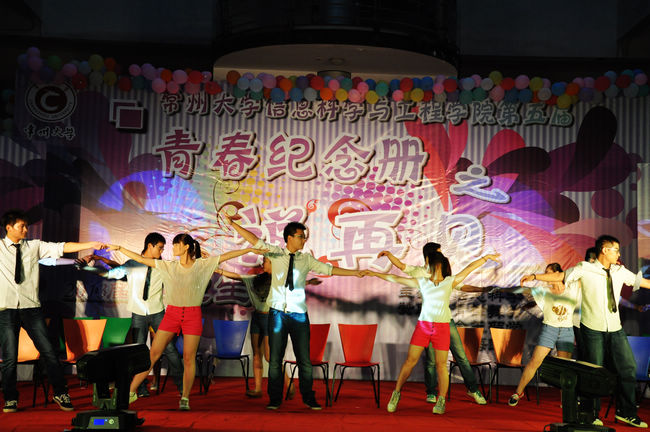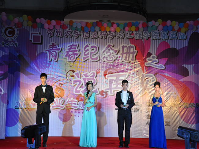 6月19日晚,由信息学院举办的欢送2013届毕业生晚会之第五届“青春纪念册”在辅楼大厅举行。王正洪等校关工委多名老师、学院党委书记柳铭、院长马正华、党委副书记储志新、毕业班班主任和学工办老师出席了晚会。