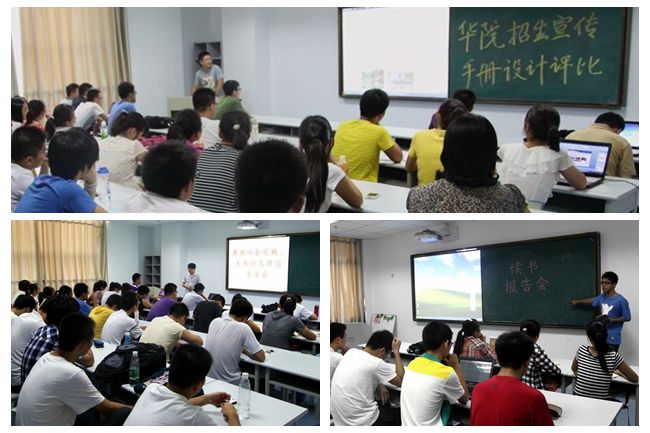 在30日上午的读书报告会上,同学们相互分享暑期阅读的美文佳作,交换读书心得,互勉互励。下午,学院开展了暑期社会实践成果交流,该院三个校级暑期重点实践小分队和学院实践小分队分别作了他们的成果展示,其中121班陈大鹏同学的暑期调研论文《浅谈石墨烯》有理有据,思路清晰,充分展现了该院学生良好的科研意识和探索精神。31日上午,6位赴美学习、实践的同学依次上台,以PPT形式分享了他们在国外的学习经历和美国独特的风情文化。在同日下午举行的首届“华院招生宣传册”设计大赛上,同学们纷纷登台介绍自主设计的招生宣传册,既饱含着学生对学院的深情厚谊,又彰显出学院的办学特色和办学理念,显示出华院学子的蓬勃朝气和创新能力。