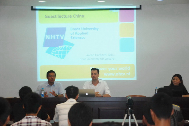 讲座中,Hardorff院长通过幽默的语言、积极的互动方式,介绍了NHTV休闲学院以推广休闲管理经营为背景,追求休闲体验的质量和意义,保证顾客的融入性和满足感,从而增加其忠诚度的教育理念。讲座后,体育学院院长徐勤儿带领Hardorff院长参观我校体育馆,介绍了我校体育场馆设施的管理模式,场馆设施及管理模式给Hardorff院长留下深刻印象。