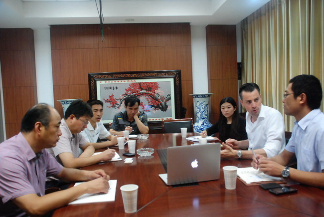 荷兰NHTV布雷达应用科技大学休闲学院院长Arend Hardorff(右二)来体育学院访问交流