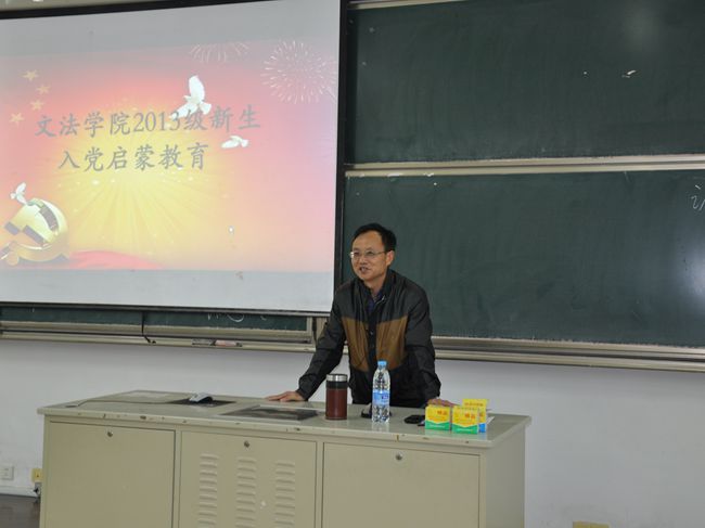 10月24日,文法学院在W20阶举办2013级新生入党启蒙教育。文法学院与艺术学院党委胡学琦书记受邀为本届新生做入党启蒙教育,活动由文法学院党委副书记薛勇主持,2013级全体新生、学生班主任参加了启蒙教育活动。