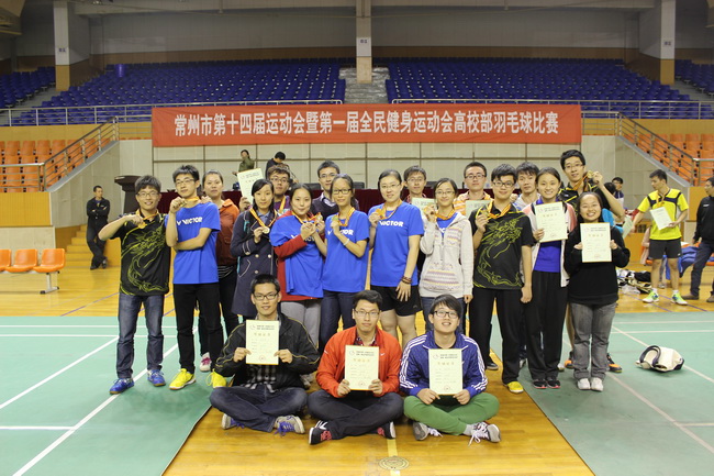 本次羽毛球比赛后,常州市第十四届运动会暨第一届全民健身运动会高校部比赛已全部结束,根据《常州市第十四届运动会暨第一届全民健身运动会竞赛规程总则》的记分方法,我校代表队再次蝉联常州市运动会高校部比赛总分第一名。