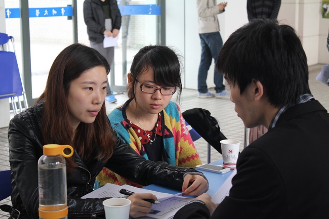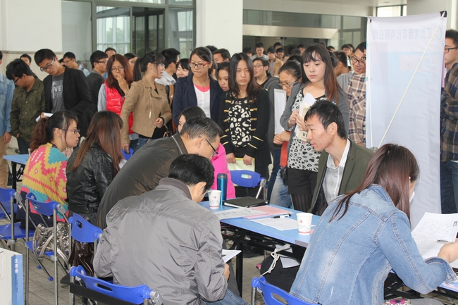 “今天的招聘会给我的感受是应聘同学太多了,工作真心不好找,好在今天的招聘会给了我很多有关应聘求职的直观经验,真心希望学校以后能够多组织一些类似的专场招聘会。”化工101班的陆林吉同学如是说。