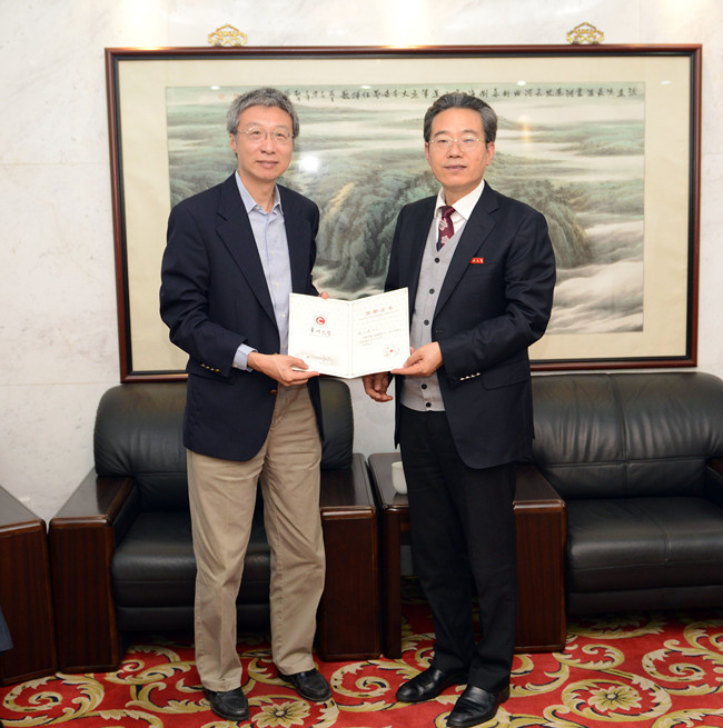 校党委书记史国栋为顾浩钟颁发捐赠证书