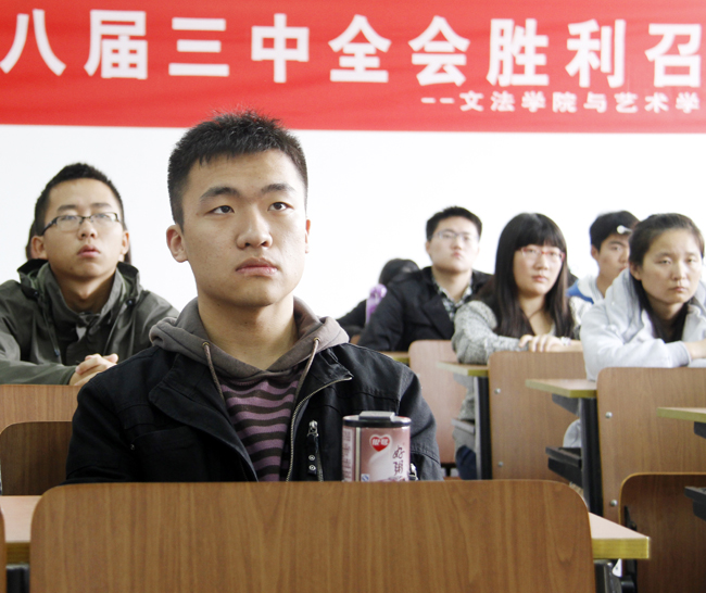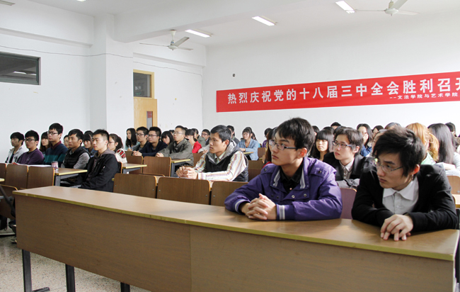 11月9日,备受国内外关注的中国共产党十八届三中全会在京开幕。我校开展党的十八届三中全会专题党课学习活动,邀请文法学院副院长、思政部部副主任衡孝庆副教授为学生党员解读十八届三中全会及其对中国未来发展的重要意义,近百名学生党员代表参加了此次学习活动。