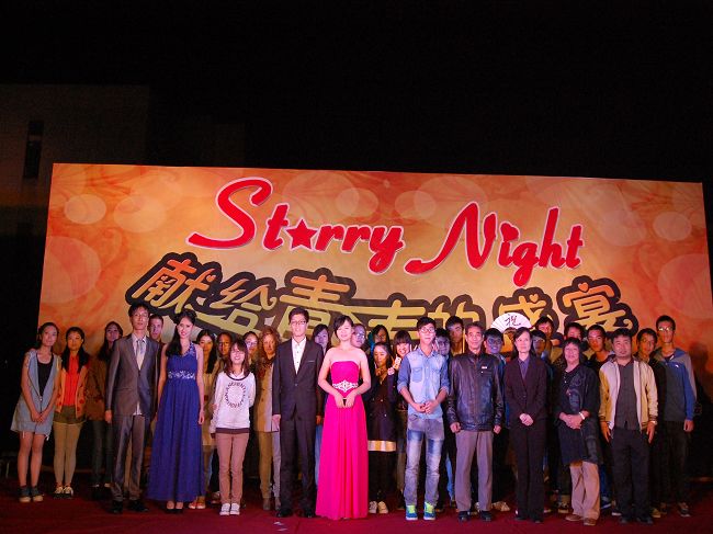 为了展现外国语学院学子风采,丰富校园文化生活,近日,由外国语学院承办的第二届StarryNight文艺晚会在水月广场举行。院党委副书记谢章丽,院关工委副主任范嘉碧老师,各学院团委书记以及500余名同学观看晚会。