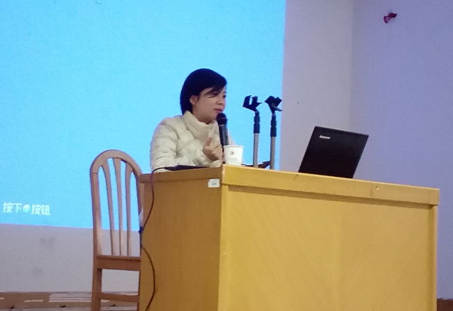 肖蓓结合播放的两部创业短片,就大学学习历程、学习期间专业和兴趣的平衡、创业初期的艰辛历程和现今企业做大做强的资源积累等多方面向同学们娓娓道来。她告诫同学们要珍惜常州大学给予每个同学的机会,放低姿态、端正态度,努力学习的同时,发展自己所“乐”的事儿,静候机会的来临,并敢于抓紧抓牢。她鼓励同学们每走一步都要给自己最骄傲的肯定,在“迷惘”中坚持找到自己认为“对”的路。她还幽默风趣的从“主视、仰视、俯视”等机械制图立体思维的角度阐述了待人接物的道理。同学们认真聆听讲座,并积极向校友提问。