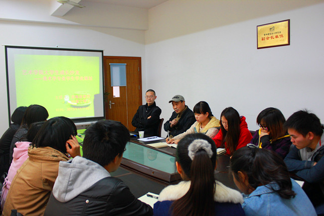 为引导青年大学生正确认识自我,积极规划大学学业,艺术学院于近日下午在文彰楼420举办了以“美术学专业学生生涯规划”为主题的沙龙讲座。此次讲座有幸邀请到了美术学系主任黄海波教授和叶康宁博士两位老师担任主讲,学工老师、美术学专业各年级学生代表参加了此次讲座。