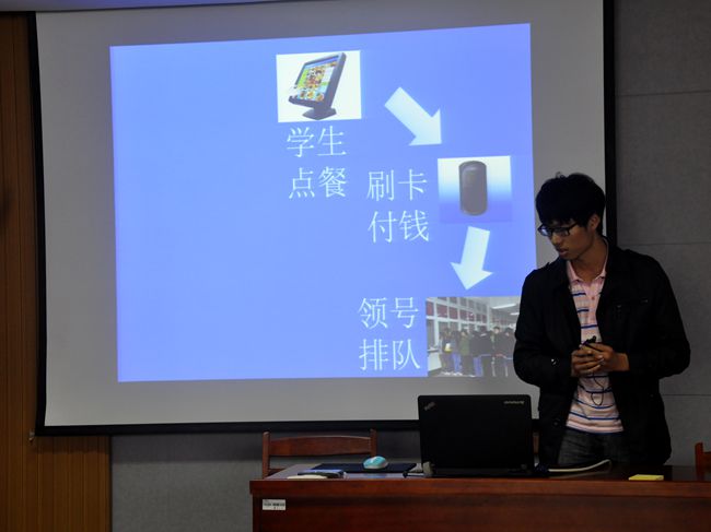 决赛现场分为作品思路的PPT展示和评委点评两个部分。选手们通过PPT展示介绍了作品的创意来源、原理、功能及创意作品的技术支持、可行性分析。大赛中,选手们的资料准备充分,创意层出不穷,解说思路清晰,而其中包含的知识及高新科技也令在场的评委和观众赞叹不已。评委们对选手的创意作品给予了充分的肯定,逐个分析了选手设计思路的思想性、创意性、可行性及实用性也指出了作品的不足之处,并为改善作品提出了独到的建议并鼓励选手将理论付诸实践。经过激烈角逐,信科121班孙剑锋同学的“智能手套”作品获得了一等奖。