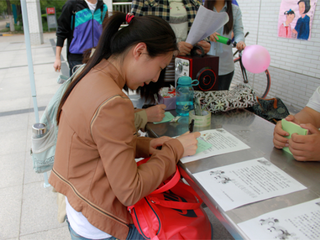 此次活动面向全体在校师生,以“感恩母亲,关爱老人”为主题,采取“集留言,送祝福”的形式,吸引了来往师生的关注。同学们驻足观看帐篷上悬挂的志愿者赴敬老院慰问老人的照片,并在留言簿上积极留言送祝福。届时,院团委青年志愿者部还将组织热心同学前往嘉泽敬老院慰问老人,弘扬敬老爱老的优良传统。