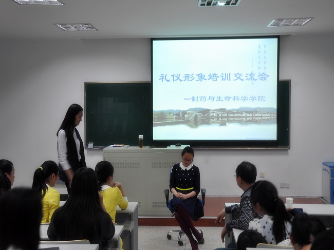 近日,制药与生命科学学院邀请礼仪培训刘丽丹老师(2010年上海世博会江苏馆形象大使、2013年美丽常州“花仙子”大赛亚军得主“梅花仙子”,我校外国语学院2013届毕业生)、王艾老师(浙商传媒常州缪斯模特工作室培训讲师)在敏行楼316开展礼仪培训交流会。学院党委副书记张继延、学工办老师、学院学生参加了本次培训交流会。