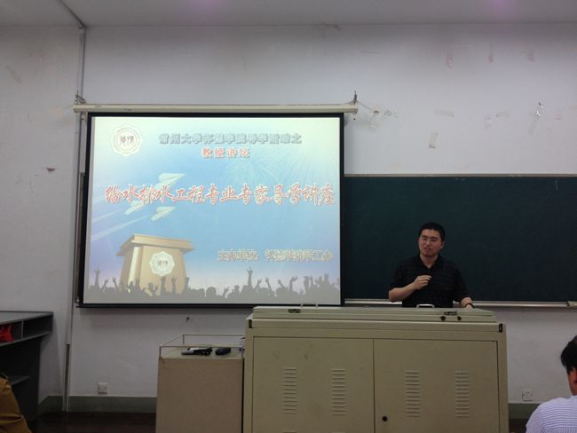 唐博士用中英双语向同学们介绍了一些专业知识,他强调了给排水工程尤其是环境工程专业的显著优势,并向同学们介绍了自己的研究领域和目前正在研究的课题。唐博士还向同学们强调了学好专业英文的重要性,只有通过与他人流利和富有逻辑的表达才能让别人了解认可并且提高自己。
