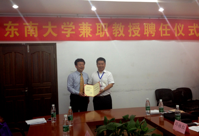 值东南大学生物科学与医学工程学院30周年院庆期间,5月31日上午,“东南大学兼职教授聘任仪式”在生物电子学国家重点实验室举行,东南大学党委常委、副校长郑家茂教授为我校医工院院长邓林红教授颁发了兼职教授聘书。此前,邓林红教授已受聘为重庆大学、西北工业大学、江苏大学等高校生物医学工程学科的兼职教授。