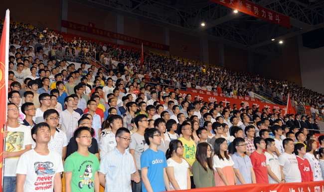 6月20日下午,常州大学武进校区体育馆洋溢着浓浓的离别情、憧憬意。2014届学生毕业典礼暨学位授予仪式在这里隆重举行,5000余名毕业生与校领导史国栋、浦玉忠、孙小强、蒋必彪、陈奎庆、丁建宁、王卫星、陆锦冲、芮国强、苏旭平以及有关职能部门负责人、各学院院长、后勤工作人员代表、学生家长代表共同见证了这一重要时刻。校党委副书记、副校长陈奎庆主持毕业典礼暨学位授予仪式。