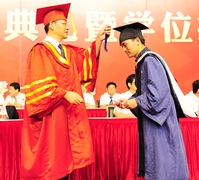 校学位评定委员会主任委员、校长浦玉忠为毕业生代表授学位
