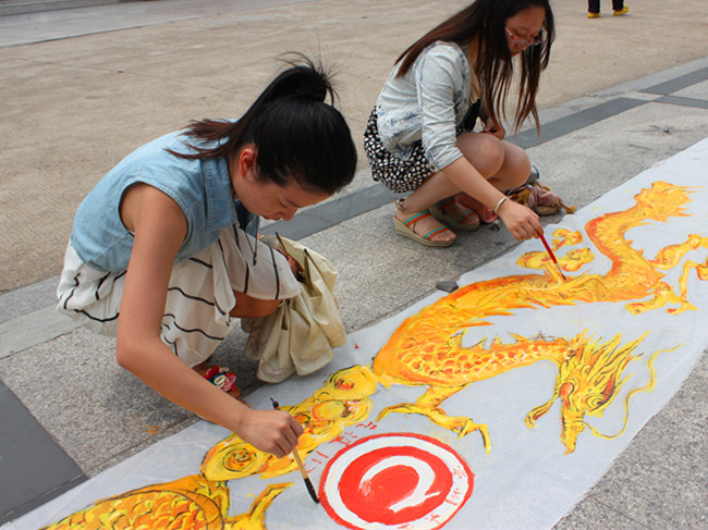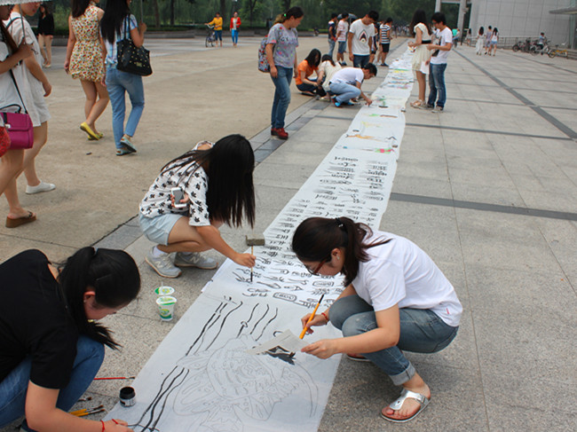 为热烈庆祝中国共产党建党93周年,深情回顾党的奋斗历史,继而培养学生爱国爱党的高尚情操,近日,艺术学院充分发挥专业特色与学科优势,组织学生党员和入党积极分子在水月广场开展了“同绘百米卷,共圆青春梦” 书画长卷活动。
