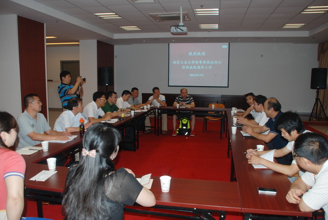 院长徐勤儿代表学院对南京工业大学各位同仁的到来表示欢迎,并从学科建设、师资队伍建设、专业建设等方面做了介绍。他说,南京工业大学与我校有着非常深的渊源,两校的体育部门有着深厚的友谊,希望通过本次活动,大家相互交流,共同发展。他指出,办专业有压力更有动力,对部门的发展也有非常大的推动作用,首先在科研上,通过专业建设,引进与培养高层次专业人才,带动科研团队形成合力,大大提高学院科研水平;其次在学科交流上,有了专业支撑,加大了与其他体育院校联系与沟通,拓宽了学科前沿信息的来源渠道,推动部门的发展;最后在人才出口方面,专业的建设增加了与相关企业的接触,建成实习基地后增加了学生就业机会,扩大学校的社会影响力。