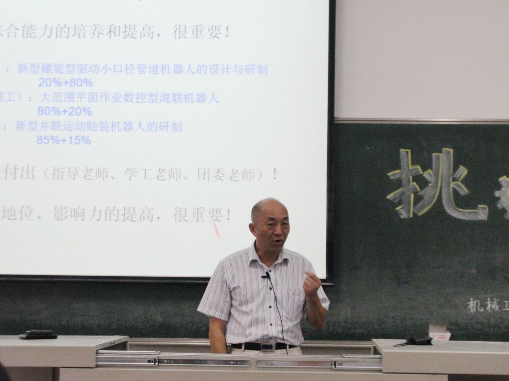 近日,机械工程学院、城市轨道交通学院“挑战杯”备战交流会在武进校区主楼302举行。在“挑战杯”国赛上三摘探花的指导老师沈惠平教授应邀出席交流会。沈教授以申报作品应具有的三性及申报书的填写等方面进行了经验介绍,他利用PPT结合学院历届申报作品进行了展示并详细分析了各个申报要点。他还与到会师生进行了交流互动。。