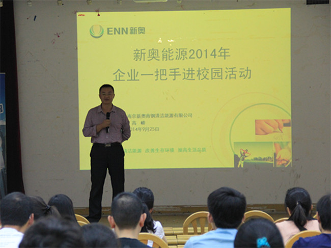 宣讲会分为四个环节,分别为走进新奥集团、了解新奥能源、个人职业生涯经验分享和互动答疑环节。两部视频告诉了学生们现在全球气候变暖,污染严重的现状,令同学们不禁若有所思。高峰着重讲到了LNG,CNG这两种新的智能能源,详细的诠释了它们的优缺点。在职业生涯经验分享环节,高峰结合自身发展经历,劝勉同学们在大学里要认真读书,工作后也要不断学习以充实自己。在最后的互动答疑环节,学生们纷纷提出了自己的问题,让现场气氛达到了高潮。