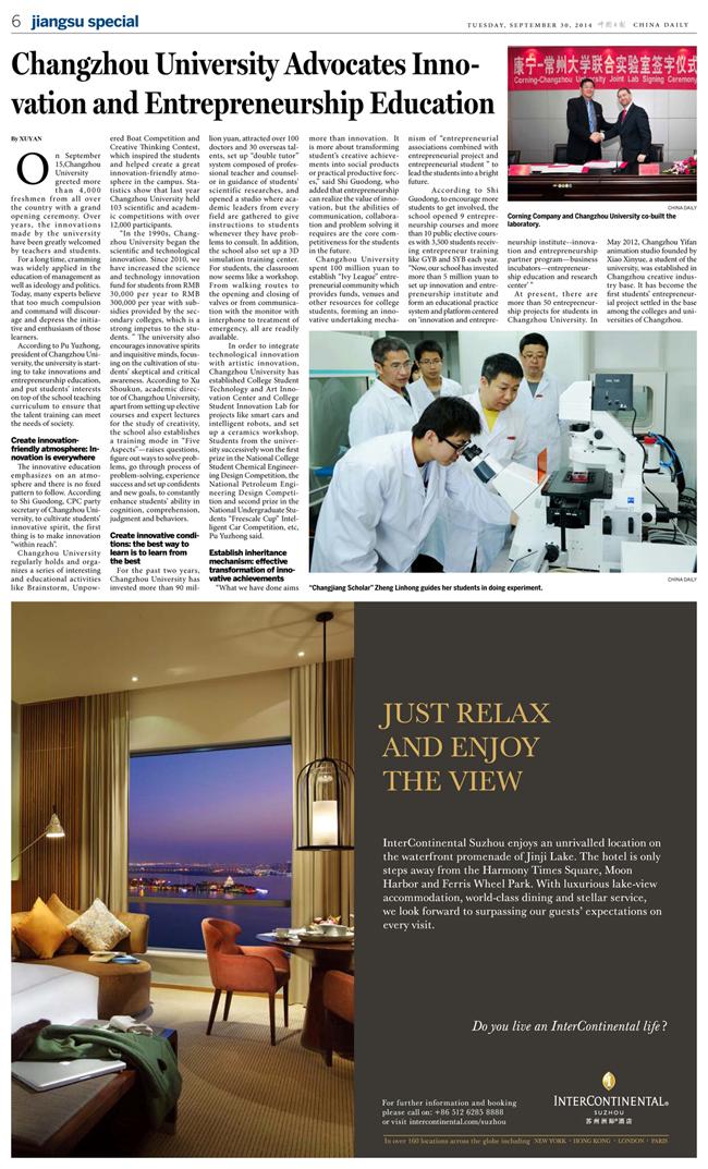 Changzhou University Advocates Innovation and Entrepreneurship Education